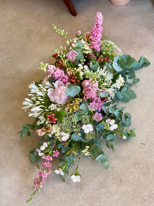 Les Jolies Fleurs fleurissent tous les événements de la vie, du plus joyeux au plus triste, mais avec le souci d'un impact environnemental réduit. Toute l'année, nos fleurs locales et de saison accompagneront les obsèques de vos défunts.